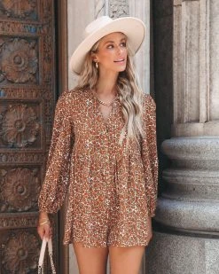 Embrace Autumnal vibes in the Cedar Floral Button Up Romper in rust floral that features a split neckline.
