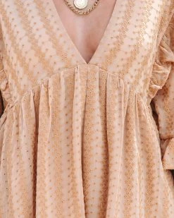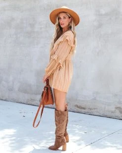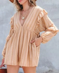The romper of the Summer is the Pick Of The Patch Pocketed Eyelet Romper in mustard features a square neckline.