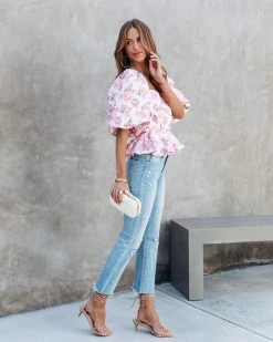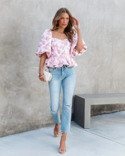 Go for a femme vibe in the Katrina Floral Puff Sleeve Peplum Top in pink multi that features puffy sleeves.