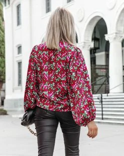 Be the best dressed in the office in the Kourt Printed Balloon Sleeve Top in multi that features a smocked neckline.
