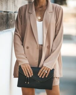 //Best Seller// The matching Smith Pocketed Blazer is so chic for Spring! This tan, double breasted beauty has a notched lapel and two functional flap pockets.