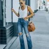 Our Benji High Rise Slim Straight Denim will be your new everyday favs! These medium wash high rise pants are designed with a straight skinny leg. Finished with a front fly zipper and button closure.