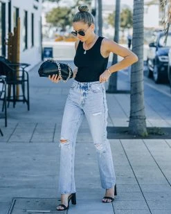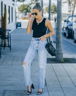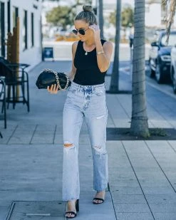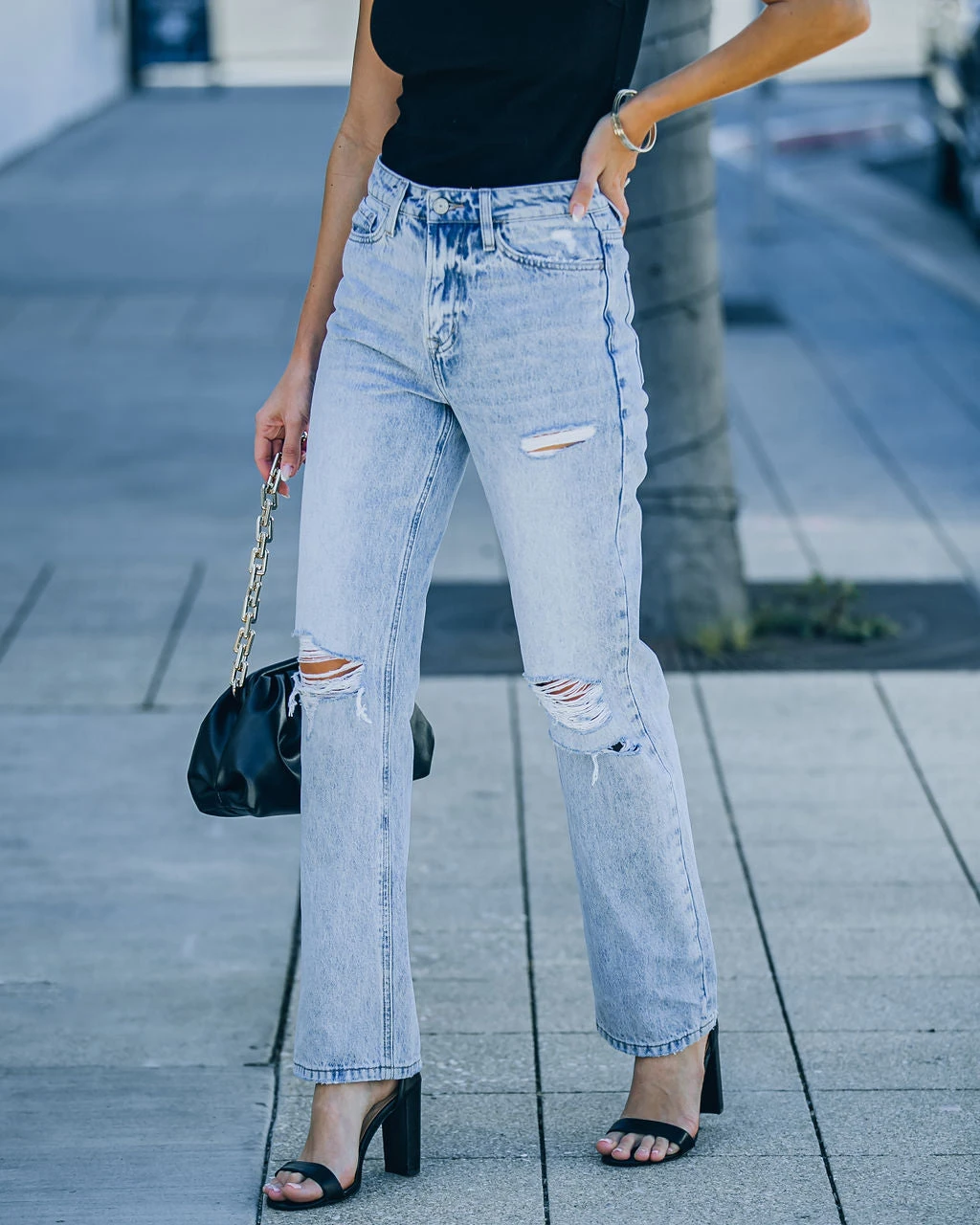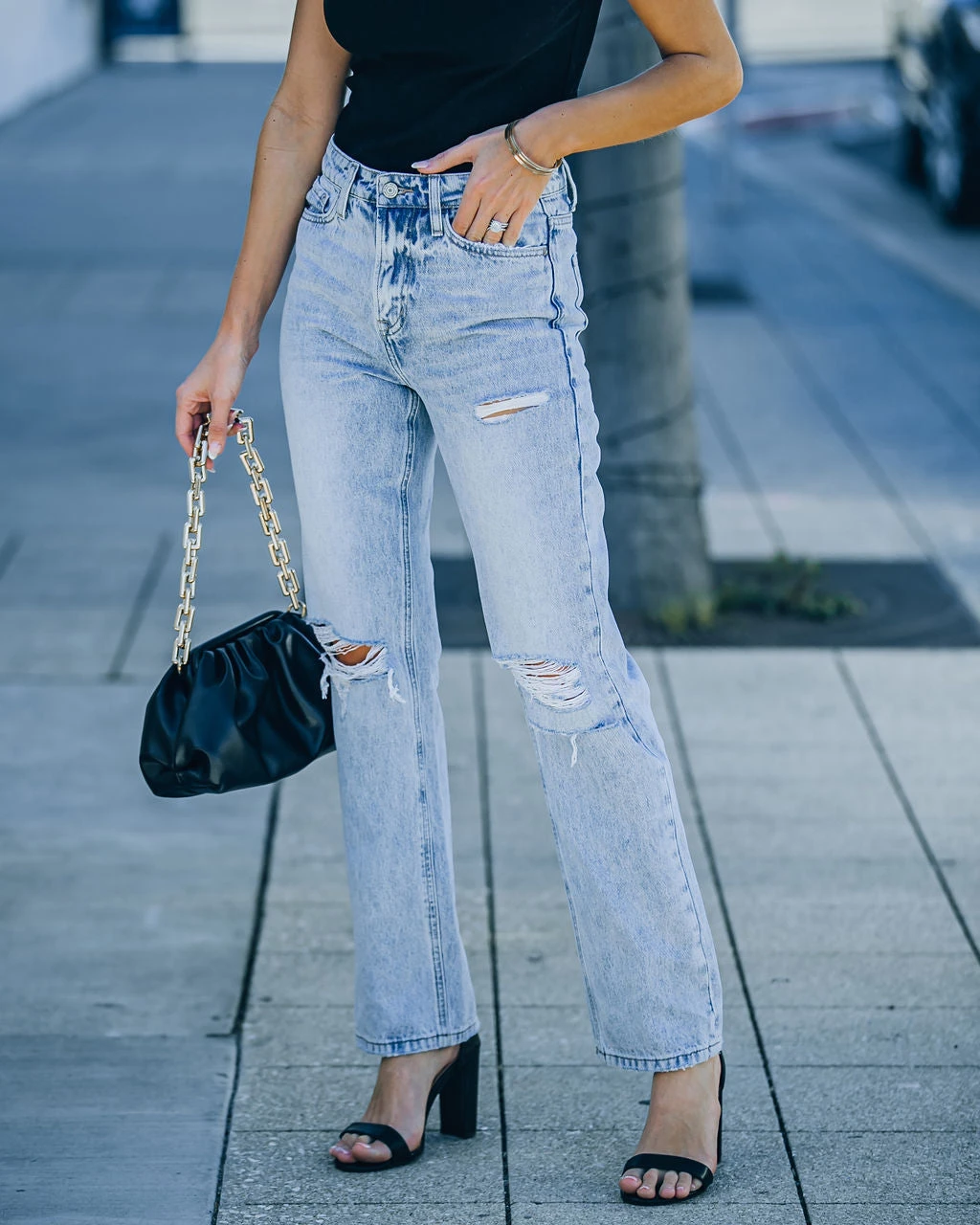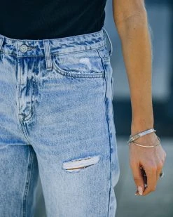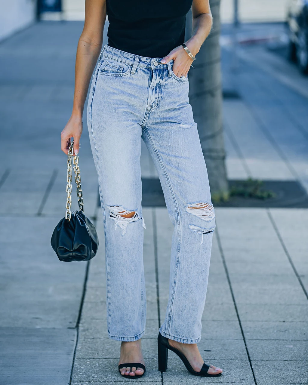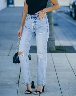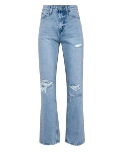 Channel your inner cool girl in the Public High Rise Distressed 90’s Denim in light wash with no stretch and a heavy knee distressing.