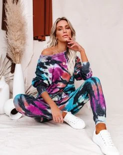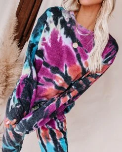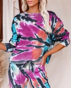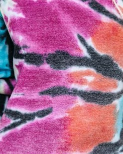 //VICI Exclusive// Stay at home in style in our Insomnia Cotton Blend Tie Dye Pullover! This bright magenta, lime, teal, aqua, charcoal, and off white tie dye pullover is the ideal pair to the matching sweatpants and slippers. Styled with the Amber Twist Hoops, Minimal Herringbone Necklace, Mosaic Coin Necklace, Insomnia Cotton Blend Pocketed Tie Dye Joggers, Viva La Vida Woven Pom Tote Bag, and Common Thread Sneaker.