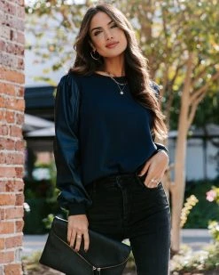 Upgrade your style in the Bronx Faux Leather Contrast Sweatshirt in navy that features a crew neckline.