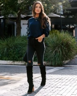 Styled with: Stella Clutch, Volt Skinny, and Saint Slouch Boot.