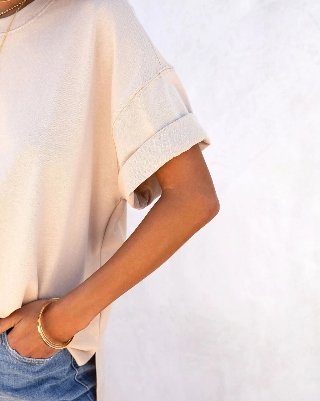 Upgrade your basic tee in the Marvela Cotton Tee in taupe that features a crew neckline and short sleeves.