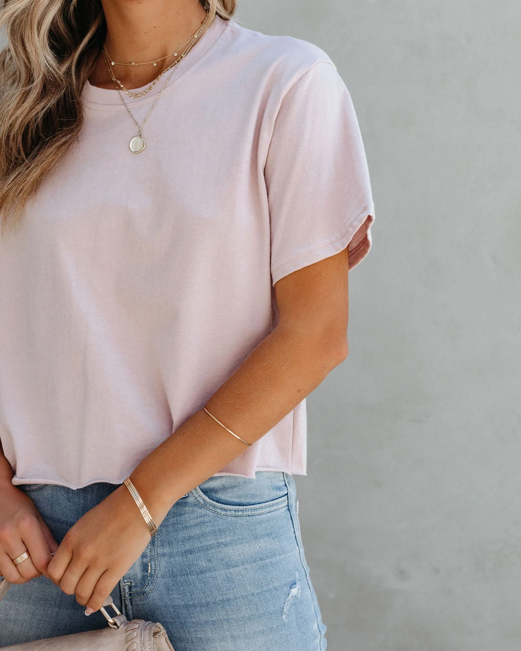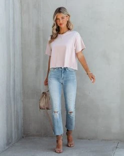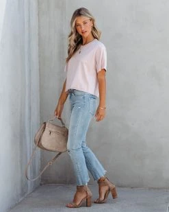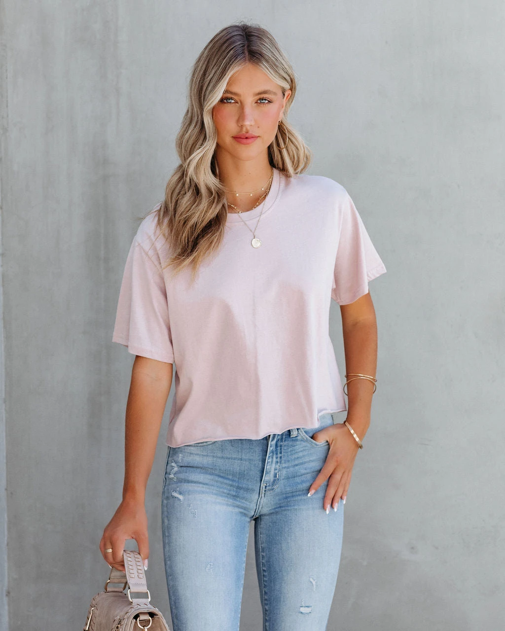 Keep it easy on the weekend in the Friday Just Called Cotton Tee in dusty rose that features a rolled hemline.